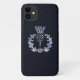 A silver chrome like Scottish thistle applique design on a racy navy blue carbon fibre style print background for a great custom device gift.