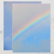Rainbow images. One side shows rainbow with grey sky above and blue sky below. Second image shows a very faint rainbow with faint white clouds in blue sky.