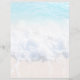 Scrapbook paper with ocean background image. Tropical blue water, and white sea foam, on beach sand is the image on both sides of 8.5 x 11 inch paper - or choose from two other sizes. Customize with text along the bottom. Sample wording is from the book of Psalms. Repace with other scripture verse or vacation information, or any text. Wording is on one side of the paper only. Add photos and / or other memories to this sturdy paper that comes with or without an envelope.