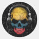 Scratched Colombian Dj Skull with Headphones Classic Round Sticker