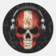 Scratched Peruvian Dj Skull with Headphones Classic Round Sticker