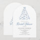 Scribble Blue Bow Christmas Tree Bridal Shower Invitation