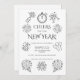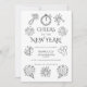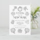 Scribble Doodles Cheers to New Year Party. Available digitally and printed. Informal and fun, with playful quirky sketchy lines and doodle illustrations. Easily personalise to your own details in black and white.