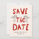 A playful and modern save the date card featuring your own photo and a customizable QR code.