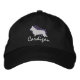Modern Cardigan Welsh Corgi hat has a white dog silhouette in front of a purple scribble, and the breed name scripted below. Excellent pet lover embroidery!