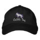 Modern Australian Cattle Dog hat has a white dog silhouette in front of a purple scribble, and the breed name scripted below. Excellent pet lover embroidery!