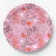 Serve up love in style with these charming paper plates. Adorned with the word "Love" and heart designs in white, brown, and red on a soft pink background, these plates are perfect for Valentine's Day, anniversaries, or any celebration of love.