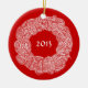 Scribbleprints Wreath - White, on Red Ceramic Tree Decoration