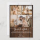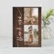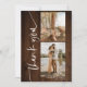 Modern simple and elegant brush script with 5 photos collage grid wedding thank you on on brown country barn rustic wood.