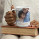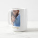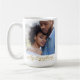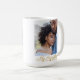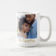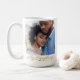 The Script Across Us mug features a centred full-width photo with a flowing cursive phrase My Everything overlaying the bottom. A delicate gold line with a heart accent adds warmth. The clean white base and modern layout create a sleek design that feels deeply heartfelt.