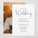 Script Calligraphy Photo Emerald Green Wedding Invitation