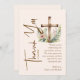 Script calligraphy Rustic Cross Greenery Baptism Thank You Card