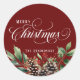 With a deep red base colour and a watercolor Christmas Decoration with red berries, greenery and pine cones. A swirly white script font in the centre of the card saying Merry Christmas. Easy to customise and change, or keep as is. This traditional Christmas sticker are versatile with many uses. Add to your gifting as a part of wrapping and labelling, add to your mailing and envelopes, add on gift bags or other.