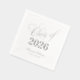 Elegant script font class of 2025 graduation silver foil paper napkins. Perfect for a high school senior graduation party or college graduation party.