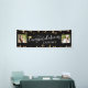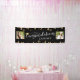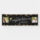 Graduation banner sign with a modern script title of CONGRATULATIONS GRADUATE'S NAME and CLASS OF 20XX in white with two photos and a gold star border against an editable black background that you can change to coordinate with your school or party theme colours. PHOTO TIP: For fastest/best results, choose a photo with the subject in the middle and/or pre-crop it to a similar shape as shown BEFORE uploading and it will fill the photo space perfectly. Contact the designer via Zazzle Chat or makeitaboutyoustore@gmail.com if you'd like this design modified, on another product or would like complementary items.