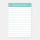 Script Elegant Aqua Lined Personalized Post-it Notes