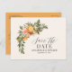 Script elegant wedding modern rustic citrus orange botanical save the date card. Part of a modern collection.