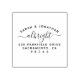 A simple typographical design featuring the newlyweds' first names in curved text over their surname in script hand-lettering. Below, there is space for a home address or other contact details. This stamp is perfect for wedding thank you cards! Remember not to delete the first and last characters from the surname template field to keep the calligraphic swirls. View the collection link on this page or visit our store for more designs.