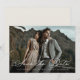 Announce your upcoming wedding with these elegant save the date cards by Redwood and Vine Design Co, featuring a horizontal photo with a white text overlay in romantic calligraphy script lettering. Customize the back with additional text and a custom QR code leading to your wedding website for more information.