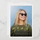 This modern graduation announcement by Redwood & Vine Design Co for your class of 2026 grad features a single vertical/portrait oriented photo, with "grad" along the bottom in gold foil handwritten script lettering. The graduate's name and school appear along the bottom. Add your party invitation details to the back, along with 4 additional photos in a collage layout.