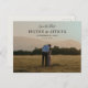 Simple and elegant font pairings and a full bleed landscape engagement photo postcard set the tone for an elegant wedding with this save the date card. Add extra event info, a wedding website and return address to the back.