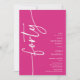 Celebrate your milestone 40th birthday in style with our 'Elegant Script 40th Birthday Invitation.' This invitation exudes sophistication with its elegant script typography, showcasing the word 'forty' running up the side. Plus, our easy-to-customise template allows you to add your own event details effortlessly. Say goodbye to fuss and hello to an unforgettable celebration.