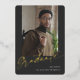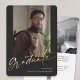 Discover our Photo Graduation Announcement Card, exquisitely crafted with a modern graduate script for a chic and sophisticated appeal. The front of the A7 card features the word 'Graduate' elegantly written in a modern calligraphy script, complemented by a striking vertical picture of the graduate. On the back, a horizontal photo adds a personal touch, under which lies space for a heartfelt thank-you message or a warm invitation to your graduation celebration. Dominated by a crisp white background with touches of black for the font, this card marries simplicity with modern elegance, making it a perfect announcement for your momentous achievement.