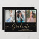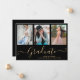 Script Graduate 3 Photo Collage Black Graduation Announcement