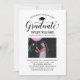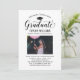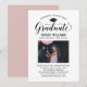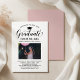 Graduation party invitation featuring modern script “Graduate” with a cap icon and a photo layout. Elegant, minimal design for a polished look. Dusty rose backing card shown for a soft, on-trend accent. Personalise the name and all event details.