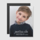Elegant graduation announcement/invitation magnetic card. Large edge-to-edge photo with superimposed text details. Casual calligraphic script typeface header with modern minimalist typography details. Clean, simple, sophisticated composition. Versatile photo card elegantly serves as a graduation announcement and invitation. Clean, simple front with a fully personalizable message area on the back. Terrific keepsake and announcement of a spectacular step in one's educational journey.