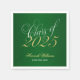 Elegant script font class of 2025 graduation paper napkins. Shown in gold, white and green. Perfect for a high school senior graduation, college graduation or graduation party! Designs are flat printed illustrations/graphics - NOT ACTUAL GOLD FOIL.