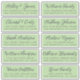 Easy to personalise, names and addresses / individual wedding address label stickers for guest invitations. These chic, modern and stylish wedding address labels feature your wedding guest names in off-black elegant handwritten script calligraphy on a green background. Simply add your individual wedding guest names and address. Exclusively designed for you by Happy Dolphin Studio.