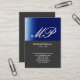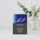 Script Grey Blue Stripe Monogram Business Card
