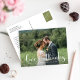 This full-bleed photo postcard pairs the charming phrase "love thanks" in flowing white script with a sweet heart accent, creating a warm and modern thank you keepsake. Your favourite wedding photo fills the entire front while the customisable couple names and date are displayed below in clean lettering. A beautiful way to express gratitude and share a cherished memory with family and friends.
