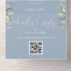 Script Hearts Floral QR Code Dusty Blue Wedding All In One Invitation