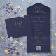 Script Hearts Navy Blue And Gold QR Code Wedding All In One Invitation