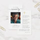 Honour your loved one with our Script In Loving Memory Funeral Photo Prayer Card. This elegant card features a cherished photo and a heartfelt prayer, perfect for providing comfort during a time of loss. Designed with a minimalist and modern touch, it includes a beautiful script calligraphy and a psalm or prayer of your choice. Ideal as a sympathy memorial keepsake, this card is suitable for religious ceremonies, including Catholic and Christian funerals. Personalise it to create a meaningful tribute that family and friends will treasure.