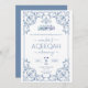 A script blue aqeeqah invitation for a baby boy with an Islamic ornate border theme. The card is easy to customize with your wording, font, font color, paper shape options, and choice of paper types. The subtle look is stunning on the front, while the blue-contrasting backside makes this akika dinner invitation truly unique.