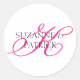 K Script Monogram Stickers (Dark Hot Pink / Black / White)...These elegant, chic, and modern stickers are the perfect way to thank your friends and family for attending your wedding and sharing your special day with you. Great for thanking friends, family, and loved ones for your bridal shower gifts, wedding gifts, bachelorette party gifts, or for just being there and supporting you during your special day. Ideal stickers to use on your wedding favours or on the bags / baggies for your candy bar / buffet. The design features a script monogram initial of your new last name as well as the names of the bride and groom. See WindyCityStationery.com for our complete line of "Script Monogram" stickers in a wide range of colours. We have every letter in the alphabet available!