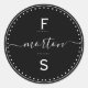Simple dotted circle along with a lovely script last name with swashes and first and middle initial.