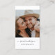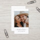 Modern and professional photography business cards featuring your photo with trendy minimalist script typography. Add your contact information to the back. Includes three social media icons and a field for your username.