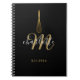 An elegant black and gold script monogram name recipe notebook featuring a chic gold whisk. Personalise with your initial and name to create a beautiful elegant gift. Perfect for home and business use. Designed by Thisisnotme©
