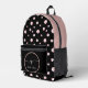 Script Monogram Custom Name Black Polka Dot Circle Printed Backpack