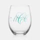 This feminine three initial script monogram stemless wine glass is an elegant addition to your bar. The monogram features your first, middle and last name initial with the last name initial in the centre. Customise the colours to match your wedding, kitchen or favourite team. These wine glasses make great gifts for bridesmaids, mothers and girl friends.