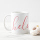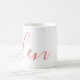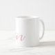 A gorgeous mug featuring a custom name in a modern, elegant script font. In pink and white. Wonderful as a mother's day, holiday, birthday, housewarming or bridesmaid gift.