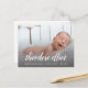 Modern birth announcement postcard features a full photograph on the front and a smaller photo on the back. Your baby's name is written on the front in elegant white script text. Their birth stats are below in a simple bold font. Don't worry a special overlay ensures that the name will be visible, regardless of the photo you use. Grandparent, aunts and uncles will love seeing all the photos! There is room on the back for a personalised greeting. Your return address is included in the template for your convenience. Gender neutral design is perfect for either a baby boy or girl.