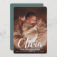 Let baby's name take centre stage with these elegant birth announcements, featuring a vertical photo with baby's first name overlaid in white calligraphy script lettering. Personalise with baby's middle and last name and birth stats beneath, and add an additional photo to the back, along with a personal message.