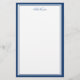Script Navy Blue Two Border Monogram Vertical Stationery