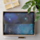 Iridescent script writing over a background of blue and green water colour cloud like designs. All with small round  blue green lights throughout the top half of the design.   Great for decoupage artwork, paper crafts, or gift wrapping.