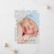 Announce your new baby boy to family and friends in style with this simply adorable photo birth announcement. Features an elegant charcoal grey (can be customised) text overlay on the front featured photo, and three square photos on the back of the card with text that can be personalised. Background on the back side includes a baby blue and white polka dot pattern with a textured appearance. Use the "customise it" feature to edit the text colours and position.